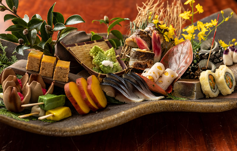 料理は、豊かな自然の恵みに感謝し、素材の声に耳を傾け、その持ち味を引き出す「引き算の美学」でつくりあげていきます。